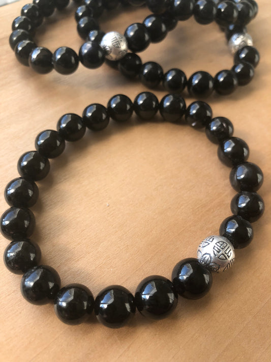 "Peace and Safety" Black Tourmaline Stretch Bracelet