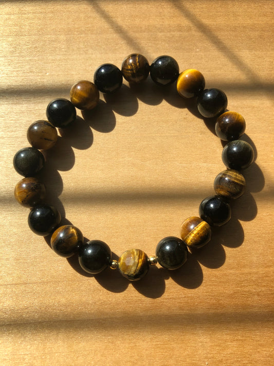 "Blue Night" - Dark Blue Tiger's Eye, and Obsidian with Gold Coated Spacers