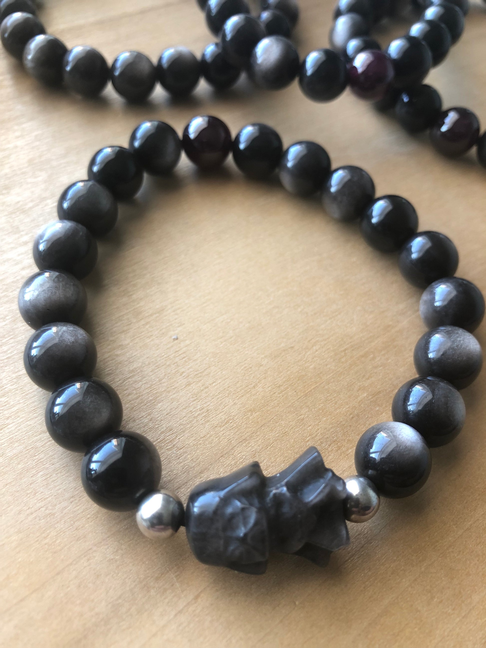 10mm Silver Sheen Obsidian and Red Garnet